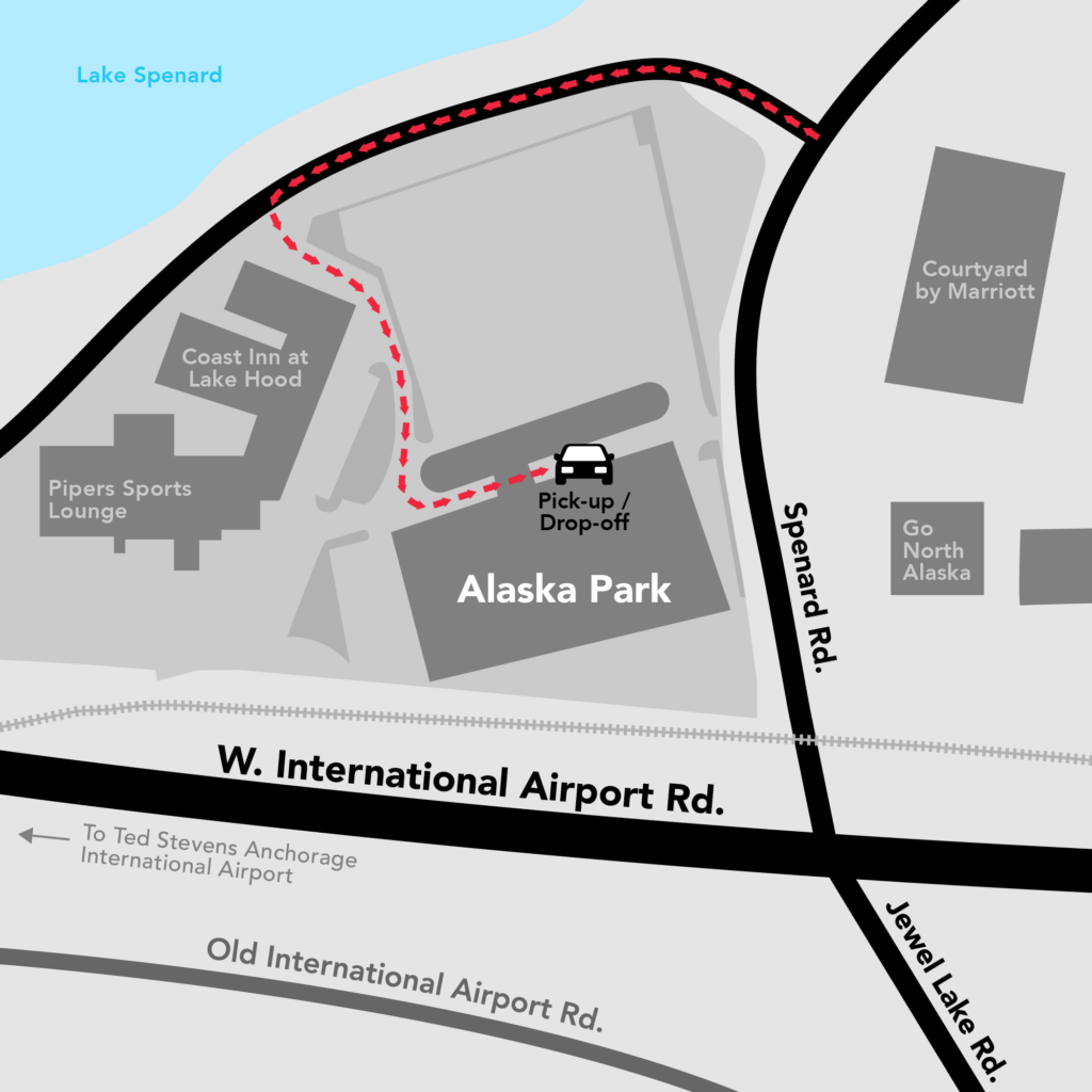We’re conveniently located on the corner of Spenard and International next to Ted Stevens Anchorage International Airport.